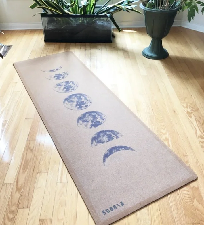 No more plastic off-gassing during your asana practice. Scoria has yoga mats covered … with cork and rubber. Travel sized, extra long, extra thick, extra wide, child-sized, and traditional sized yoga mats all come with their own carrying strap. Invest in yourself and the planet.